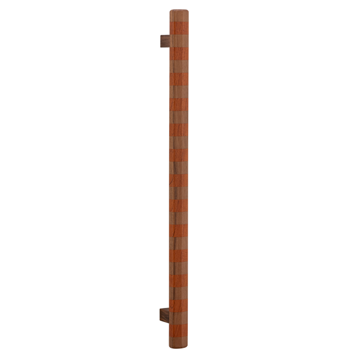 With its no nonsense, straight up and down stature, the vertical alignment of this elongated pull makes it a highly versatile household addition. Suitable for doors and concealed appliances, as well as a range of joinery surfaces – from bedroom wardrobes to pantries and linen cupboards, it can also be installed horizontally. Its striking striped timber banding feature (offered in three striking tonal combinations) adds an energetic statement to any surface it adorns, also making it a winner in hospitality settings plus workplaces that appreciate bold thinking.