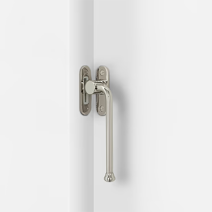 This version has a two-part handle mechanism with a catch that’s designed to be recessed into the side of the window frame.