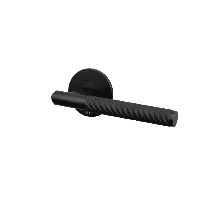 A passage door handle set made from solid metal with a brass finish. It features elegant linear-knurl detailing, torx screws and laser etched Buster + Punch insignia. Works great on all internal doors and can be combined with our matching door accessories. Includes a 60 mm backset passage tubular latch with through bolt fixings.
