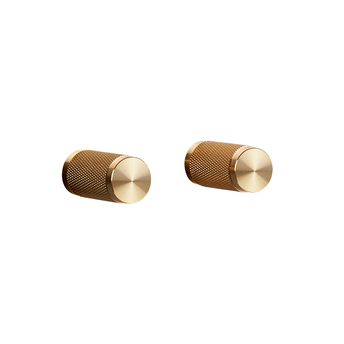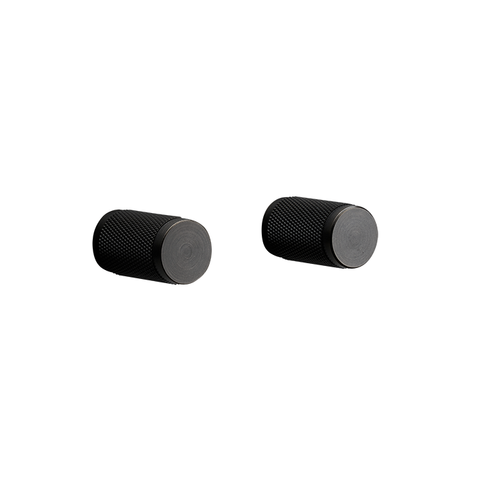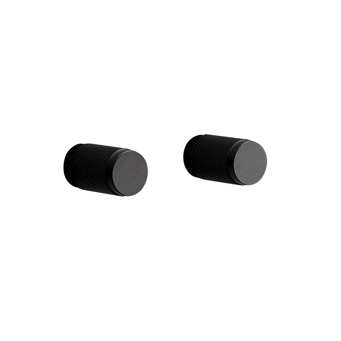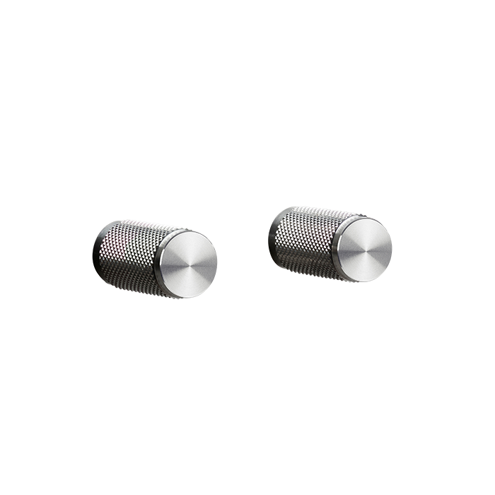 A pair of furniture knobs made from solid metal. These knobs feature the signature, diamond-cut, cross-knurl pattern and are refined by hand. They work great on cabinet doors, cupboards, kitchen units and just about anything that can open. Sold in sets of two.