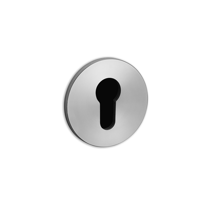 An indoor key escutcheon made from solid metal. Works great on all internal doors and can be teamed up with the matching door lever handles. This key escutcheon has a C-C fitting size (screw distance) of 41.5 mm.